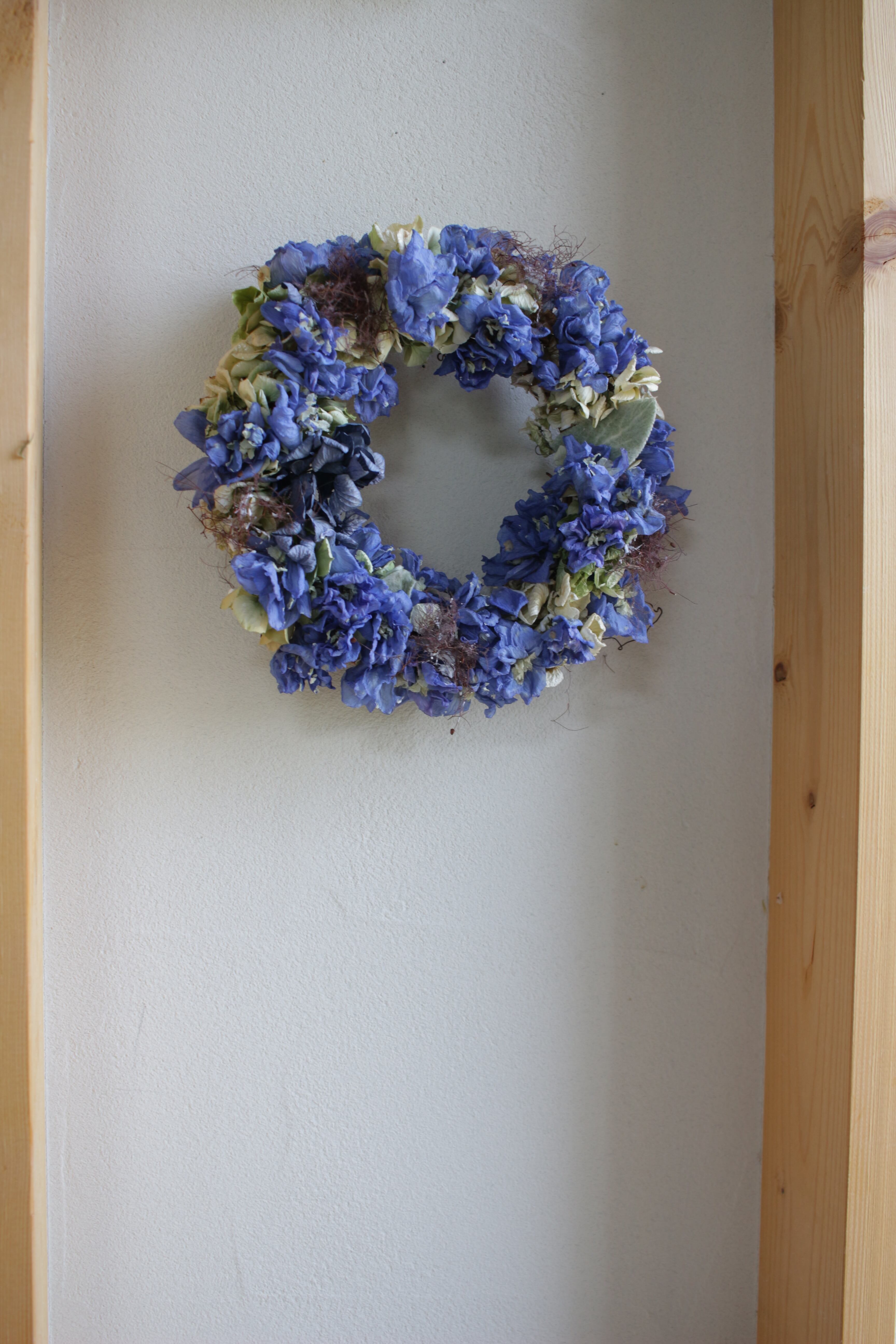 デルフィニウムとアンティークアジサイでアレンジしています。