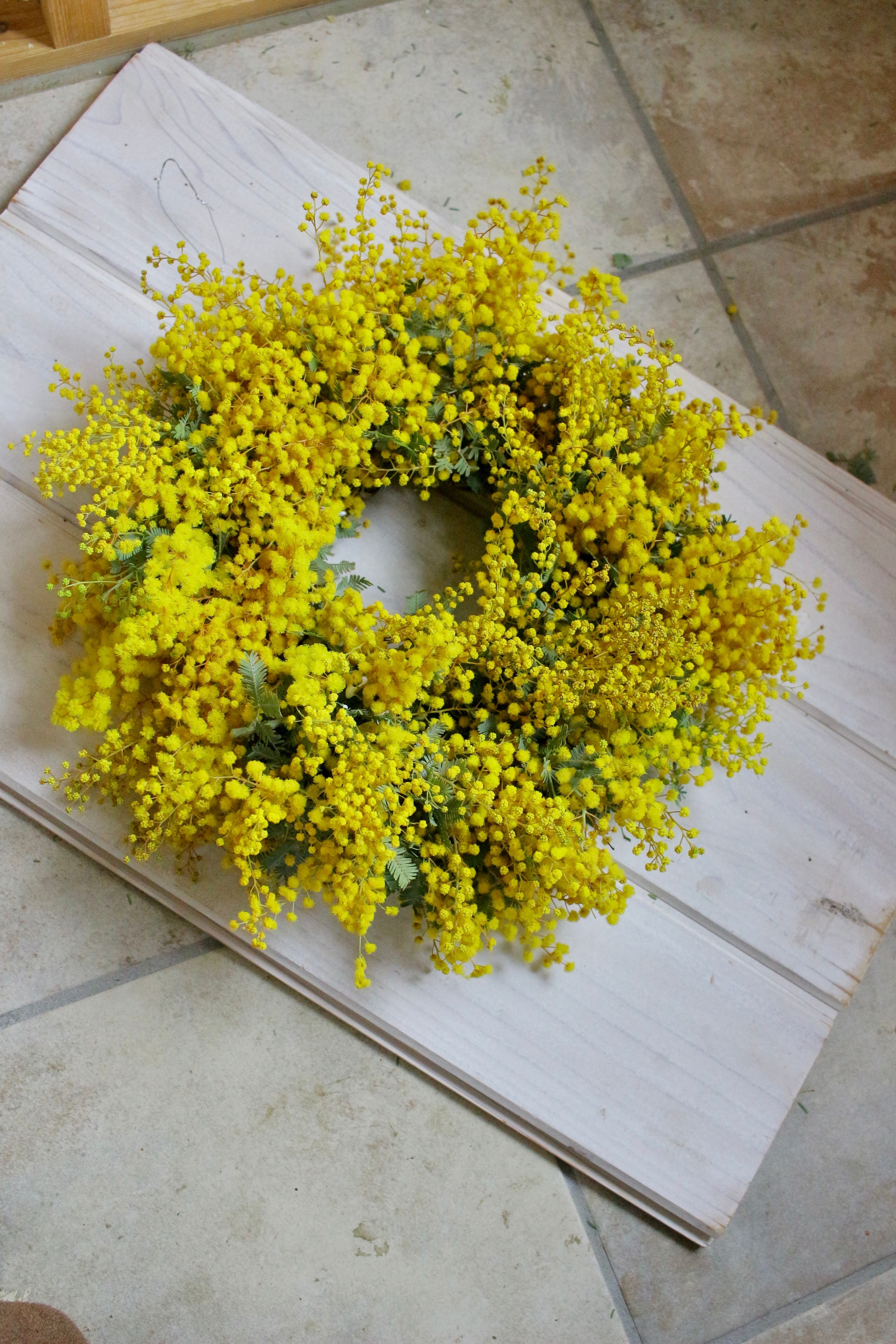 モフモフ感いっぱいの見ているだけで幸せになれそうなミモザリースです。