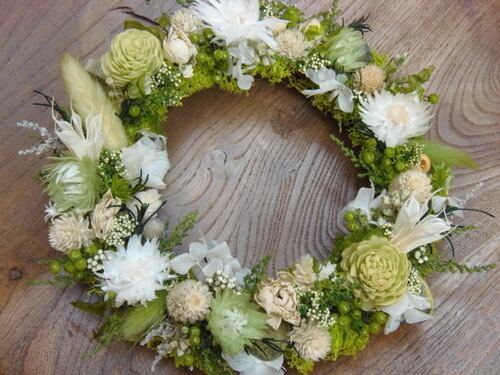 ソーラーローズ、シルバーデイジー、ニゲラ、ライスフラワー、ペッパーベリー