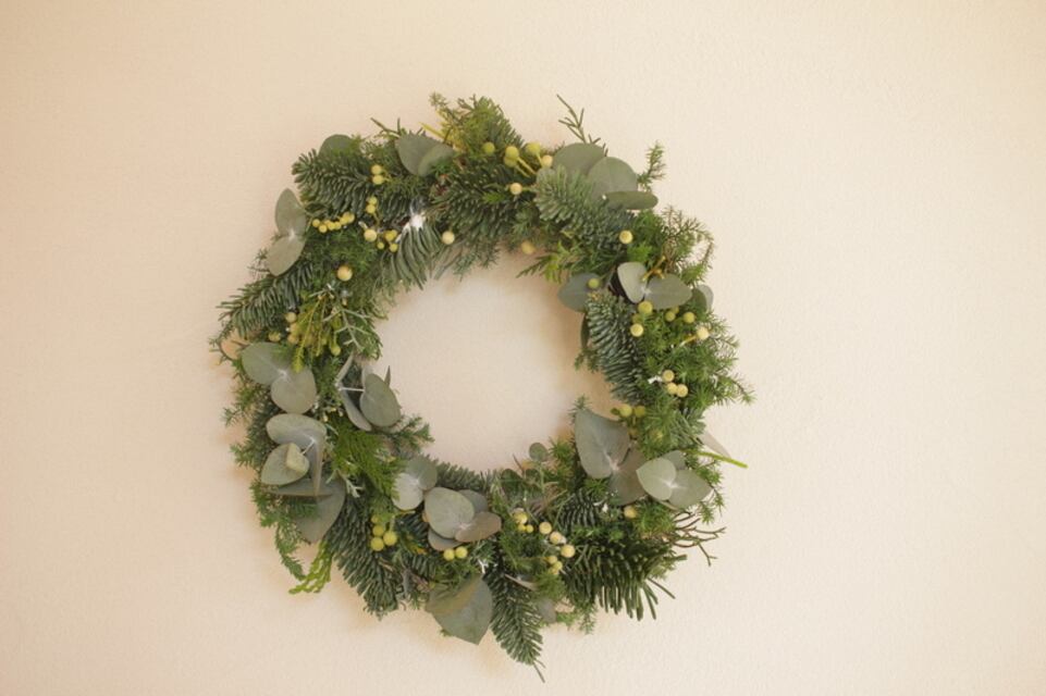 花材: サツマ杉、もみの木、ユーカリ、ヒバ、バーゼリア